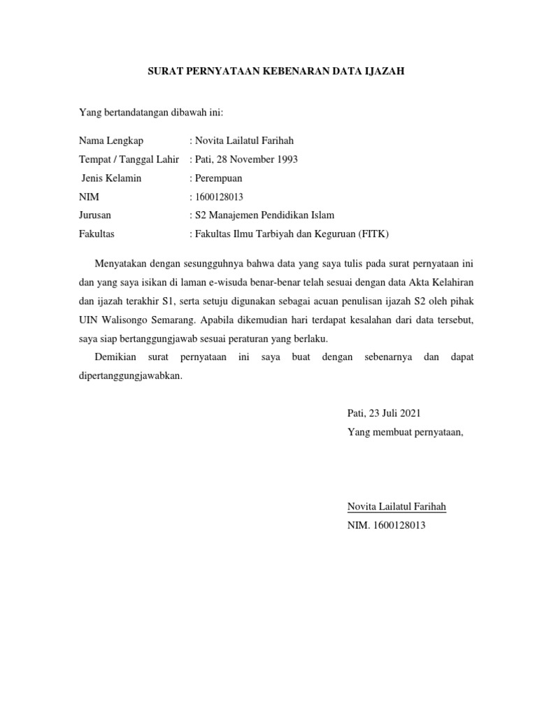 Surat Pernyataan Kebenaran Data Ijazah Vita Pdf