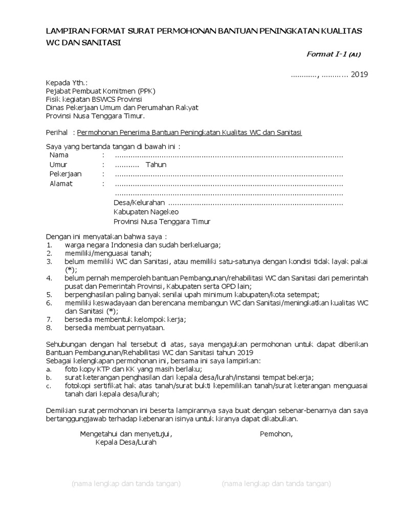 Lampiran Format Surat Permohonan Bantuan Peningkatan Kualitas Wc Dan Sanitasi Pdf